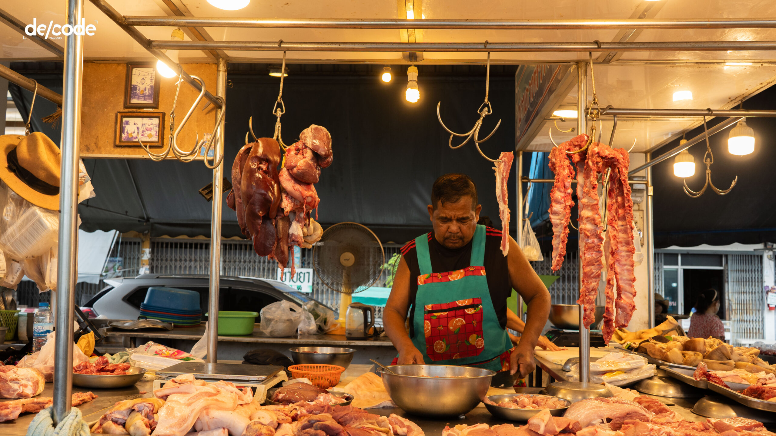 ทว่าปัจจุบัน ตลาดถูกย้ายช่วงเย็นไปอยู่ตรงโซนเศรษฐกิจใหม่ที่มีทั้งเซเว่น อีเลฟเว่น, CJ MORE และ Thaifoods ทำให้ชุมชนริมรางที่เคยมีผู้คนพลุกพล่าน เงียบหายไปตามย่านเศรษฐกิจที่ขยายตัวออกไป พ่อค้าแม่ขายจากต่างอำเภอก็ได้กำไรไม่เท่าต้นทุนที่เดินทางมา กระทั่งห้างร้านอย่างเธอก็ไม่สามารถย้ายตามย่านการค้าใหม่ไปได้ และจำเป็นต้องติดแหง็กอยู่ที่เดิม