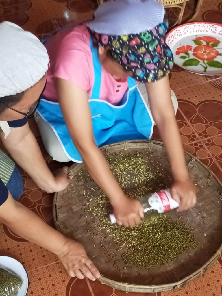 “กินได้แล้ว คนไทยใหญ่เราจะกินถั่วเขียวซ่อกต้มนี้เป็นกับข้าว รสมันจะอ่อน ๆ เบา ๆ กินได้ทุกมื้อ เวลาลูกหลานหลาย ๆ คนกลับมาบ้าน ก็จะทำกินกัน” พี่บุญศรีตักถั่วต้มใส่ชามให้พวกเราทุกคนลองชิม