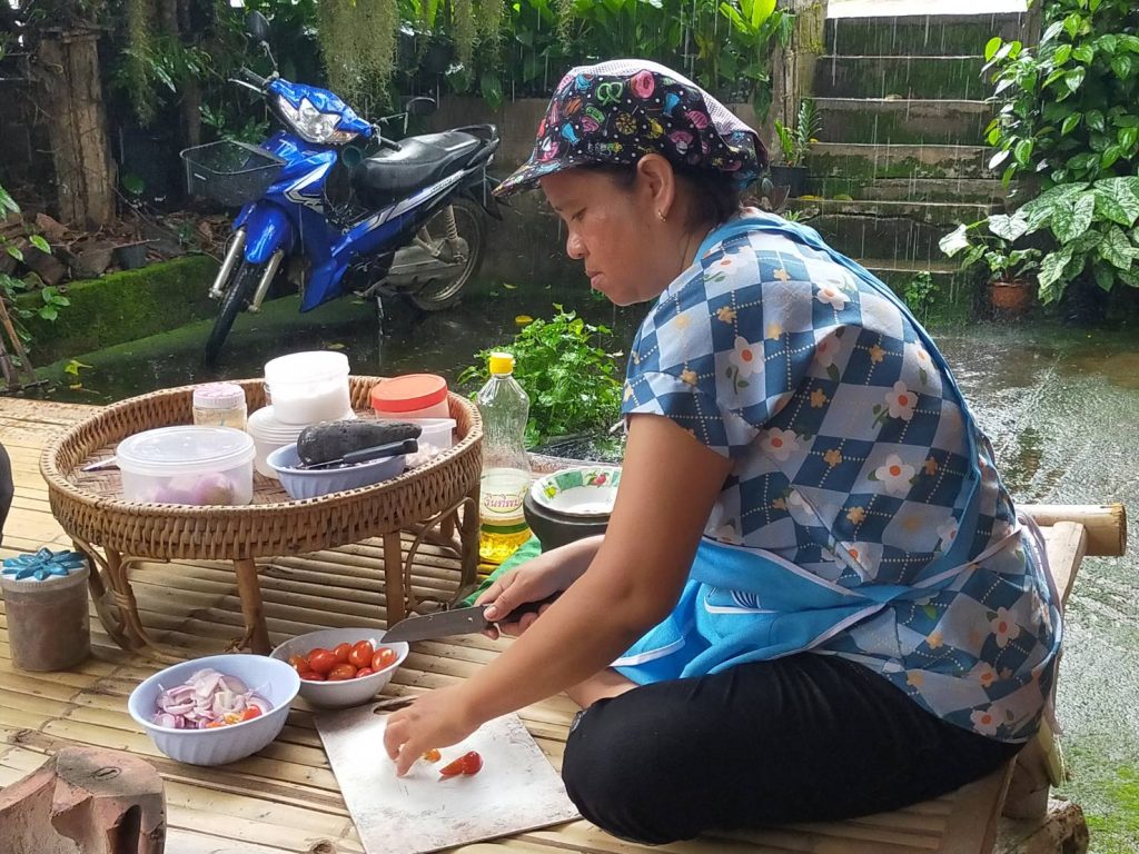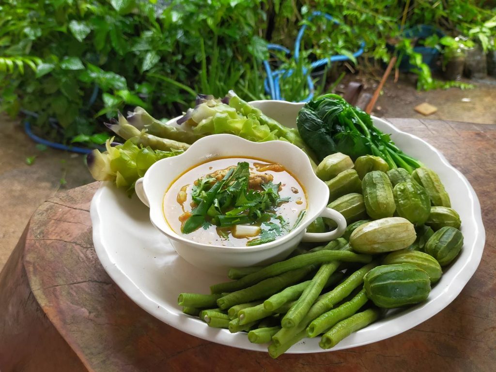 ผมได้ไปบ้านต่อแพครั้งนี้ ก็เพราะโชคดีได้ติดตามคณะกินเปลี่ยนโลก ที่มีแผนงานรณรงค์การกินโปรตีนทางเลือก ทดแทนโปรตีนที่ได้จากเนื้อสัตว์ใหญ่ในระบบปศุสัตว์กระแสหลัก แผนงานนี้มีงานศึกษาวิจัยสนับสนุนทั้งในและนอกประเทศ ว่าเป็นทางลัดที่สุดที่จะเริ่มแก้ไขปัญหาสุขภาพและมลภาวะที่มนุษย์ก่อขึ้นในโลก แถมทำได้ด้วยตัวเราเองเพียงลำพัง ผมคงเอาเรื่องนี้มาเล่าในโอกาสต่อไปนะครับ สำหรับทริปบ้านต่อแพนี้ เป็นการลงภาคสนามครั้งแรก ๆ ของแผนงานฯ โดยมี“คำขอ” มายังผู้ประสานงานพื้นที่ ซึ่งก็คือพี่หลิว ว่าอยากจะเรียนรู้สูตรอาหารไทยใหญ่ที่ใช้ถั่วปรุงเป็นหลัก รวมทั้งกับข้าวอื่น ๆ ที่อร่อยได้โดยไม่เน้นเนื้อสัตว์