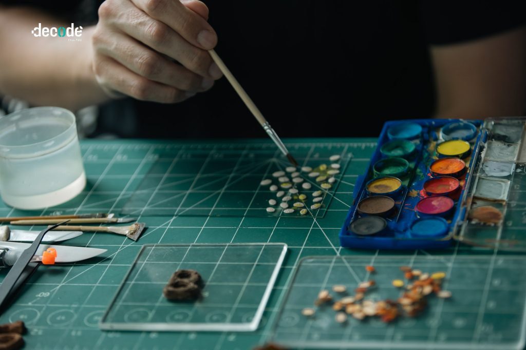 เมื่อถามถึงความแตกต่างระหว่างตอนเด็กกับตอนนี้ เขาหัวเราะ “ตอนเด็กปั้นตามใจ อยากทำอะไรก็ทำ ไม่มีชิ้นไหนเหมือนกัน แต่ตอนนี้มีส่วนที่ต้องทำซ้ำ เช่นตัวอักษร หรือต้องพยายามปั้นออกมาให้ตรงทำตามความต้องการของคนอื่น มันเลยจริงจังขึ้น”