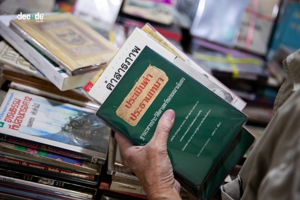 “เมื่อก่อนยอมรับว่าขายแพงกว่านี้ นี่ลุงก็ปรับตัวขายราคาที่มันถูกลง ใครขอต่อราคามาเราก็ให้ต่อถ้ามันสมเหตุสมผลและเราอยู่ได้ เราเห็นคุณภาพและคุณค่าหนังสือในตัวของมันเอง ห่อปกใหม่ ทำความสะอาดเองด้วย… เกินเจ็ดสิบเปอร์เซ็นต์ของหนังสือที่ร้านมันก็เป็นของสะสมของเราเอง”