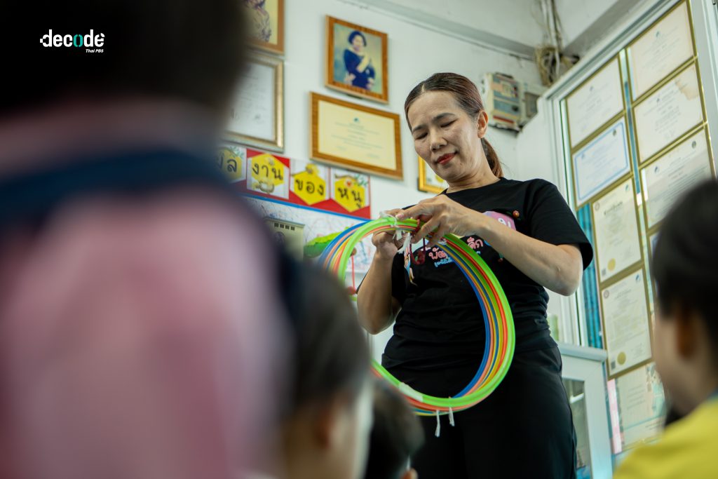 “เด็กแต่ละคนมีความแตกต่างกัน เราต้องให้เขาได้สร้างพัฒนาการของเขา ผู้ใหญ่อย่างเรามีหน้าที่สร้างพื้นที่ให้เขาได้ลองมากกว่าที่จะบอกเขาว่าต้องทำหรือต้องเป็นอะไร” ครูแดงพูดพลางอมยิ้ม