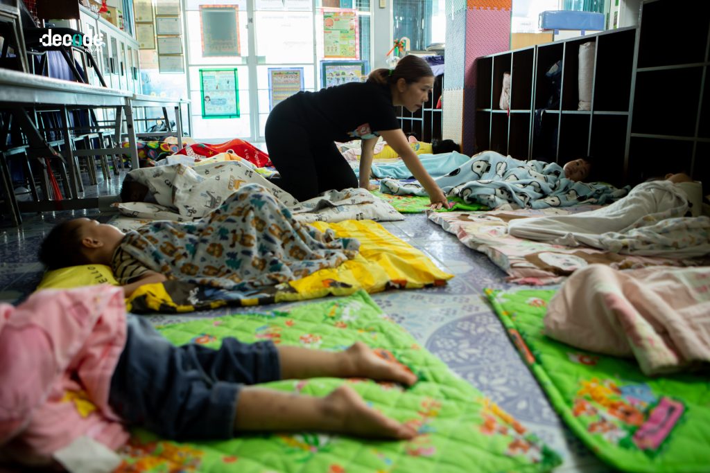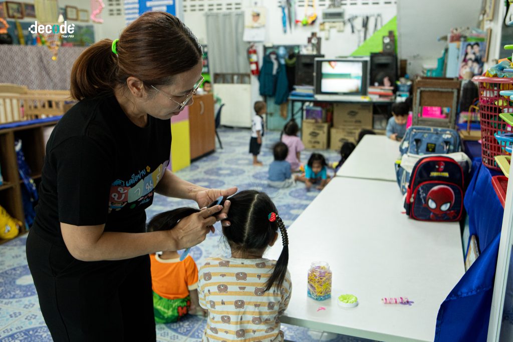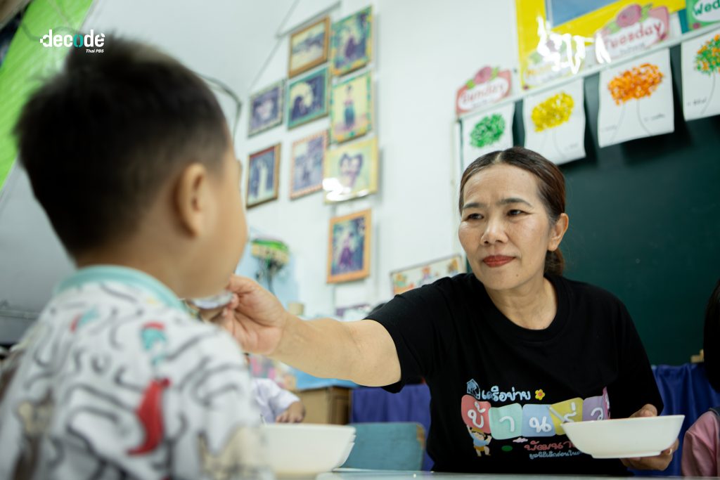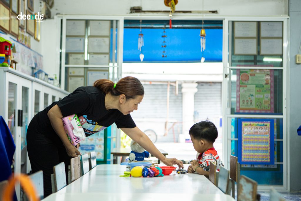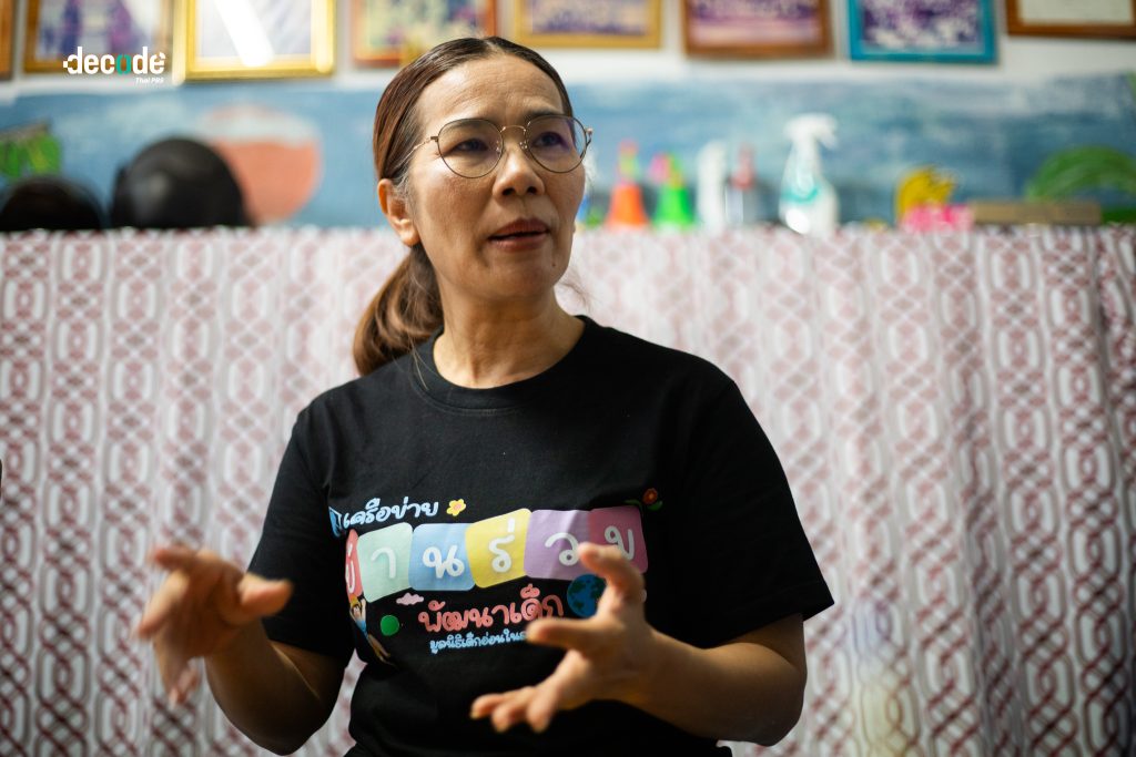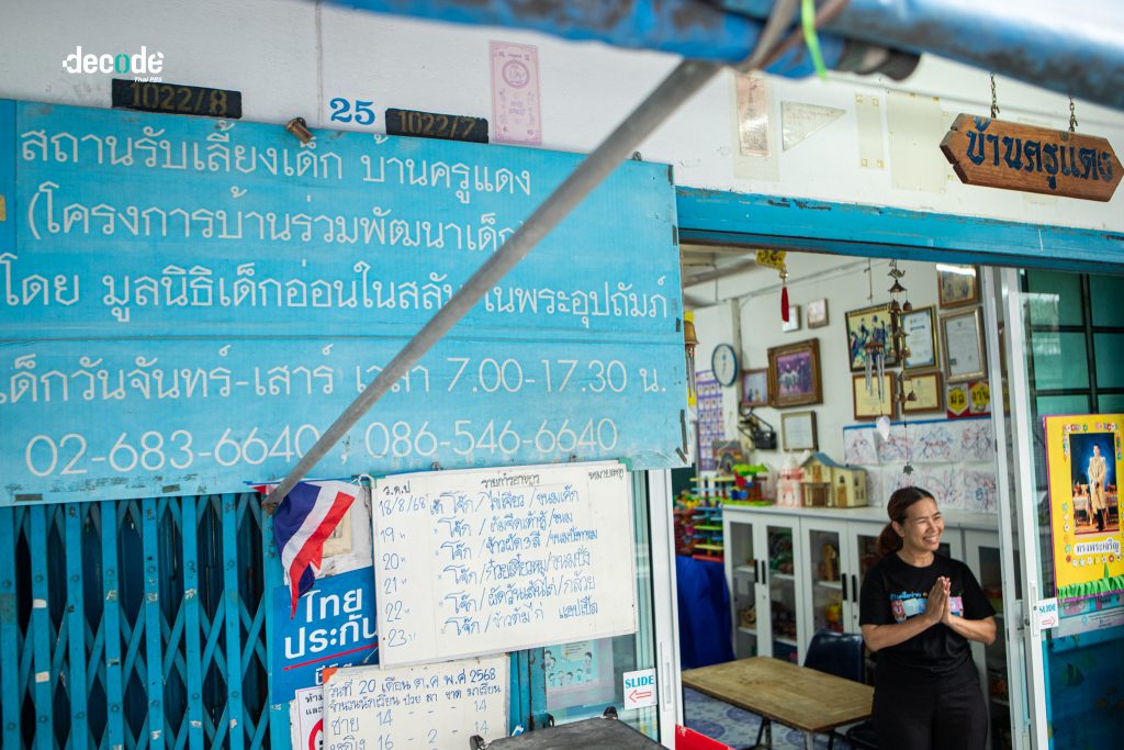 “หลายบ้านที่นำลูกมาฝากไว้กับเรา แรก ๆ เราปรับตัวหนักมากเพราะเด็กเขาก็จะชินแบบหนึ่ง กลายเป็นเข้าสังคมยาก เรียกหาแต่มือถือ สถานรับเลี้ยงเด็กมันเลยไม่ได้เป็นแค่ฝากให้ใครดูแลลูกหลายระหว่างวัน แต่มันคือคำถามว่าสังคมจะร่วมสร้างเยาวชนให้เติบโตมาเป็นประชากรที่มีคุณภาพได้อย่างไร แล้วเราจะเรียกร้องให้พวกเขาต้องเป็นคนแบบนั้น คนแบบนี้ แต่ในวัยเด็กถ้าเราไม่ได้สนับสนุนเขาเลย มันก็ย้อนแย้งกัน” ครูแดง กล่าว