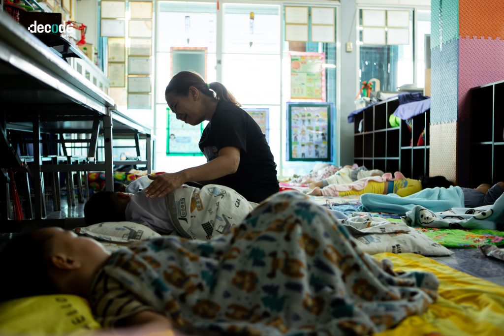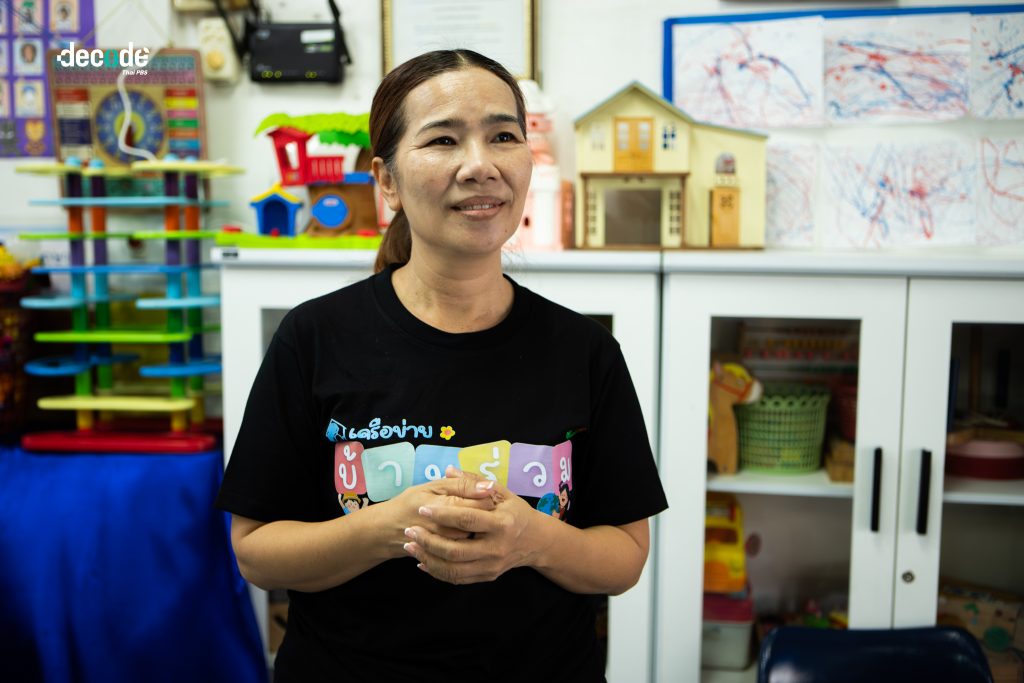 “แม้สถานรับเลี้ยงของเราจะมีราคาถูก แต่ก็มีคนทุกกลุ่มเข้ามาฝากลูกไว้กับเรา มีทั้งต่างชาติที่เป็นครูสอนภาษา ทั้งแรงงานข้ามชาติที่ได้ค่าจ้างรายวัน มีพนักงานออฟฟิศเงินเดือนครึ่งแสนที่ทำงานในย่านนี้รวมถึงพนักงานโรงงานที่ต้องทำโอทีเกินครึ่งวัน”