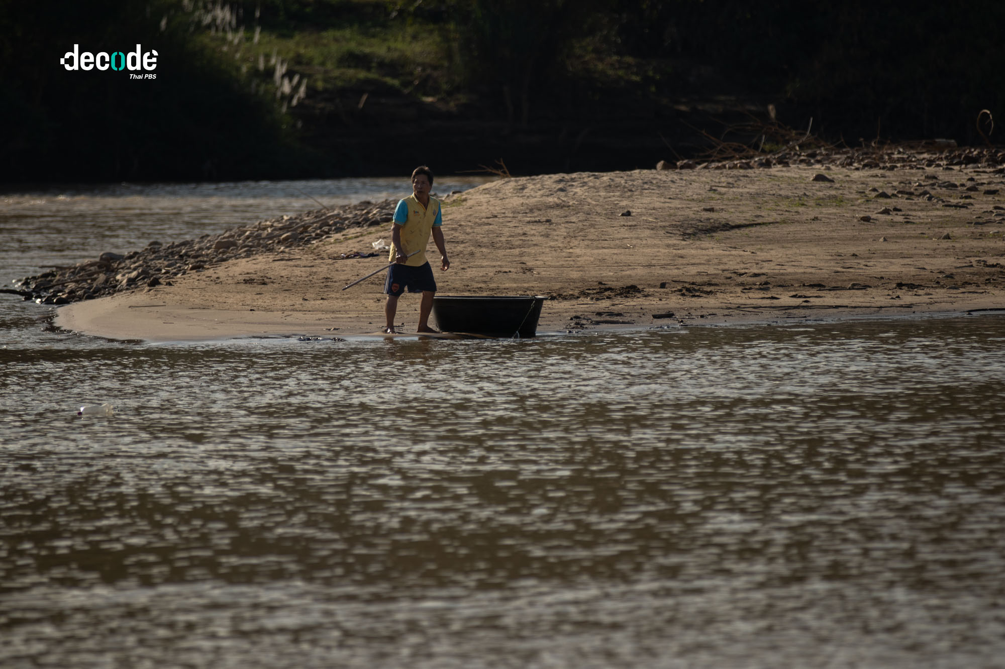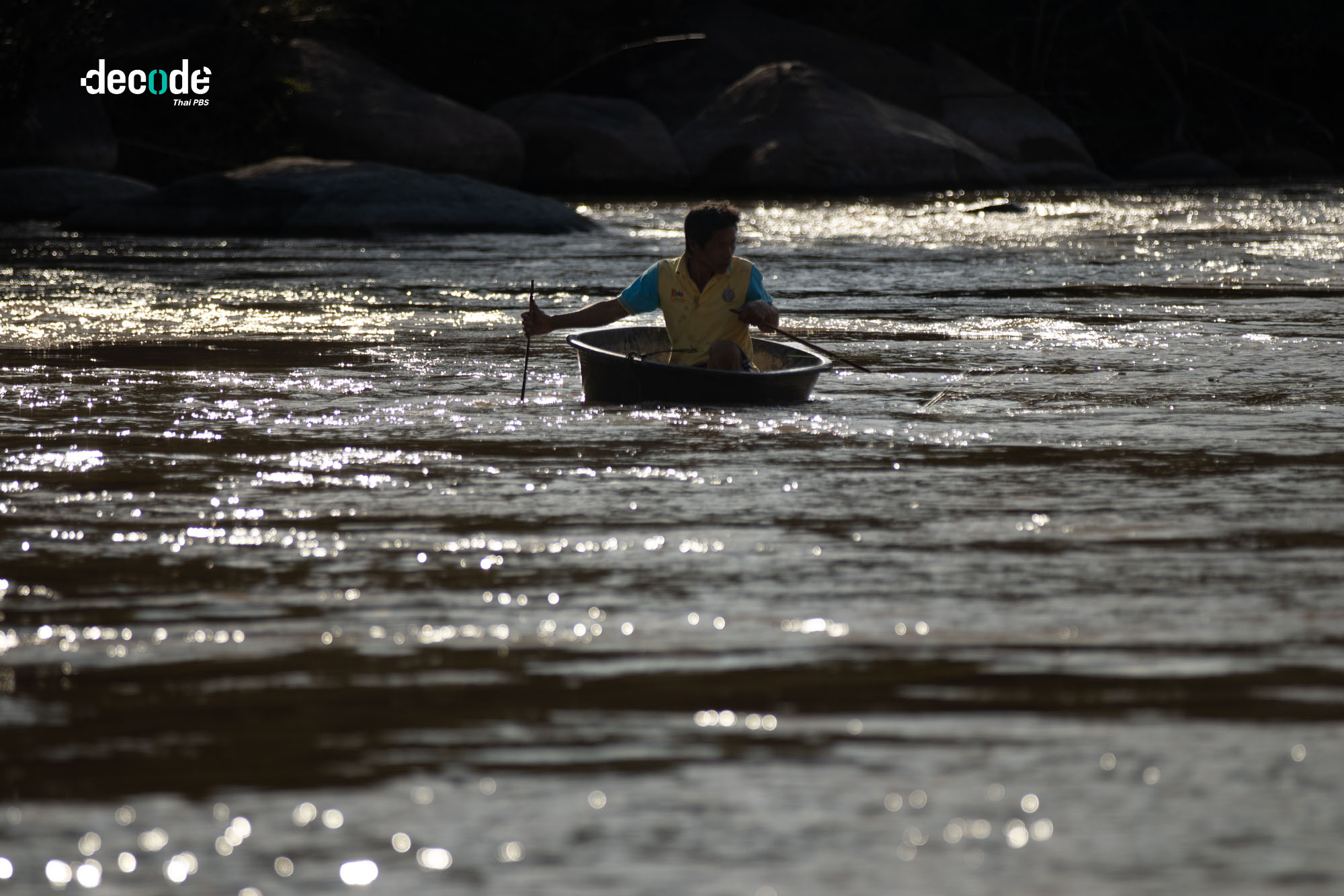 เขาพูดส่งท้าย ก่อนจะหยิบอ่างเปลผสมปูนขนาดใหญ่พอที่มนุษย์จะลงไปนั่งได้ อวนน้อย ๆ พาดไหล่ และคว้าเอาไม้ไผ่แท่งเรียวสองอันเป็นไม้พาย ก่อนจะล่องไปตามลำน้ำกกสีน้ำตาลอย่างคล่องแคล่ว