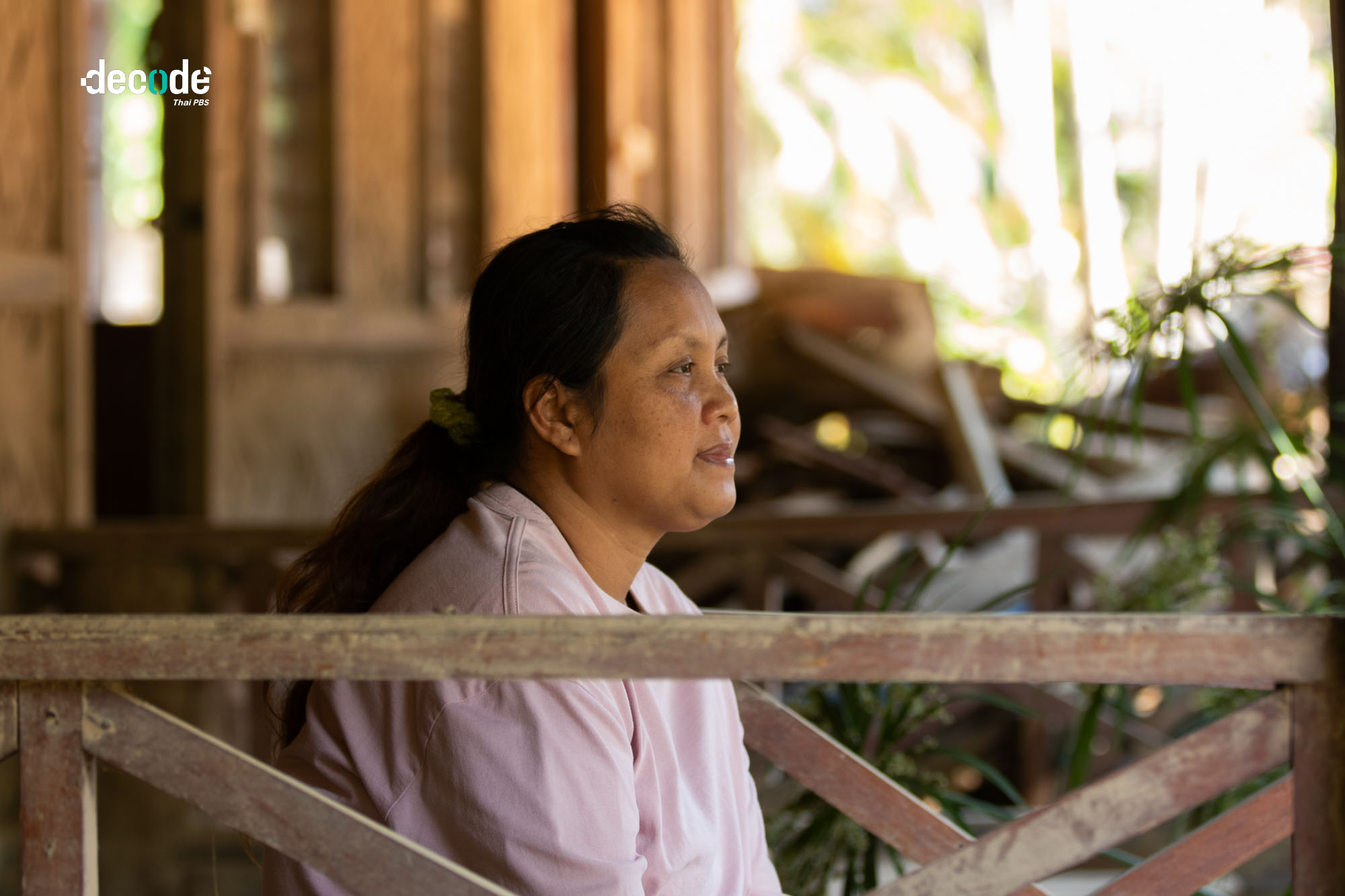 ลัดดาวัลย์ โคโด๊ะ หญิงวัยกลางคนชาวกะเหรี่ยงที่ประกอบธุรกิจเกสต์เฮ้าส์เล่าเสียงเศร้า