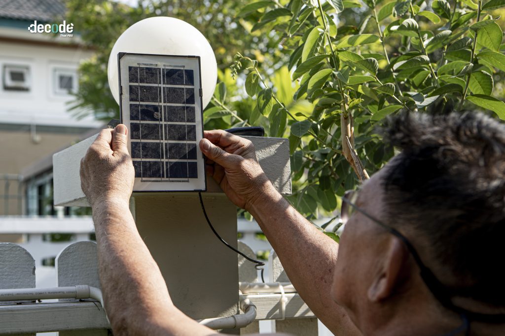 ‘ตอนเราเริ่มต้นทดลองประยุกต์แผงโซลาร์เซลล์มือสองมาใช้ในระยะแรก เราเริ่มต้นทดลองใช้งานเอง ลองประยุกต์ใช้งานโดยที่ตัดเรื่องทฤษฎีออกไปทั้งหมด เพื่อที่จะตอบคำถามประชาชนได้ถึงความคุ้มทุนในการติดตั้งโซลาร์เซลล์ พอระยะเวลาผ่านไปที่เราเข้าไปสนับสนุน แลกเปลี่ยนแนวทางการติดตั้งให้เป็นเรื่องที่ง่ายดายขึ้น ข้อสงสัยของประชาชนที่ถามถึงความคุ้มค่าก็ลดน้อยลงไป’