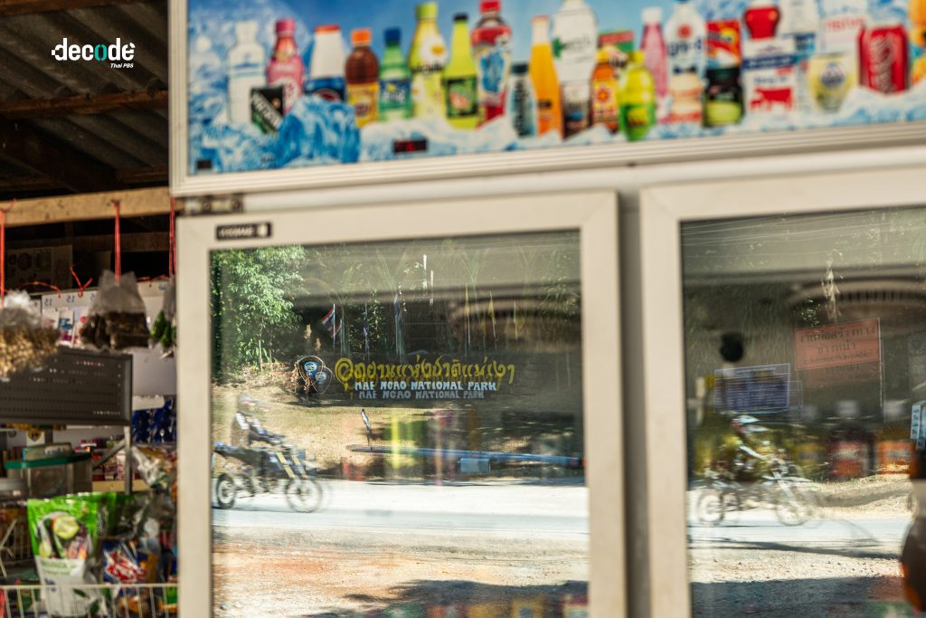 เราโดยสารรถกระบะคันเดิมถัดลงมาอีกไม่ไกลนัก พื้นที่หน้ากว้างประมาณ 2-3 คูหาของอาคารพาณิชย์ในกรุงเทพฯ คือขนาดโดยประมาณของร้านขายของชำ ที่มีลุงจอดา ชาวกะเหรี่ยงจากหมู่บ้านนาดอย ตำบลแม่สวด จังหวัดแม่ฮ่องสอน ที่ย้ายมาอาศัยและทำกินที่หมู่บ้านแม่เงา ตำบลแม่สวด เป็นเจ้าของ ซึ่งตั้งประจันหน้าตรงข้ามกับป้าย ‘อุทยานแม่เงา’ อันเป็นพื้นที่อุทยานเตรียมการแห่งชาติพอดิบพอดี