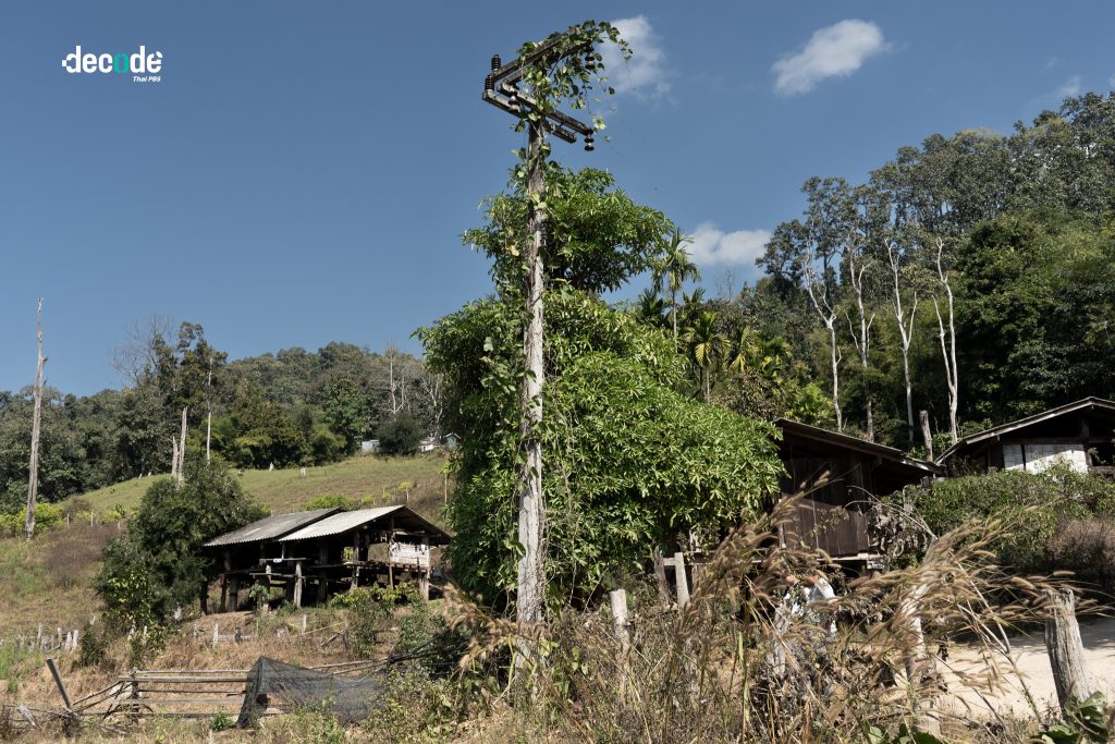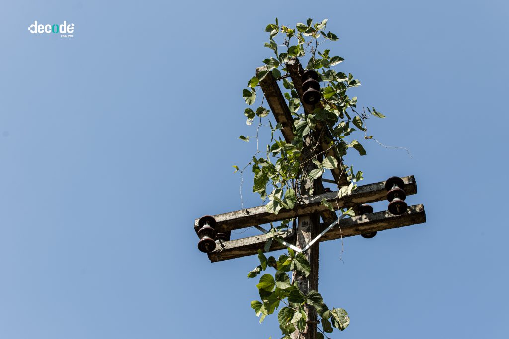 “ชาวบ้านเรียกกันอย่างนั้น เพราะเสาไฟฟ้าอยู่อย่างนี้มาเป็นสิบปีแล้ว มีแต่เสาไม่มีไฟ ปักไว้เป็นอนุสาวรีย์เฉย ๆ เพราะอยู่ในเขตป่า การไฟฟ้าจะเข้ามาก็ผิดกฎหมาย”