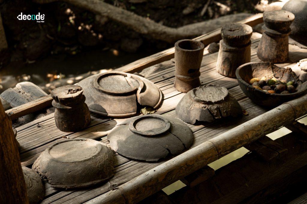สองเท้าพาหยุดลงตรงหน้าบ้านหลังหนึ่ง อันที่จริงเรียกว่าบ้านก็คงไม่ถูกต้องเสียทีเดียว ที่นี่มีลักษณะของการเอาไม้มาทำเป็นโครงเหมือนบ้าน เดินเข้าไปมีเสื้อทอที่เป็นเอกลักษณ์ของชาวกะเหรี่ยงอยู่หลายตัว ทั้งยังมีข้าวของเครื่องใช้วางเรียงรายอยู่ ดู ๆ ไปเรียกว่าเป็นพิพิธภัณฑ์จัดแสดงวิถีชีวิตชาวกะเหรี่ยงขนาดย่อมก็ไม่ได้ผิดอะไรนัก