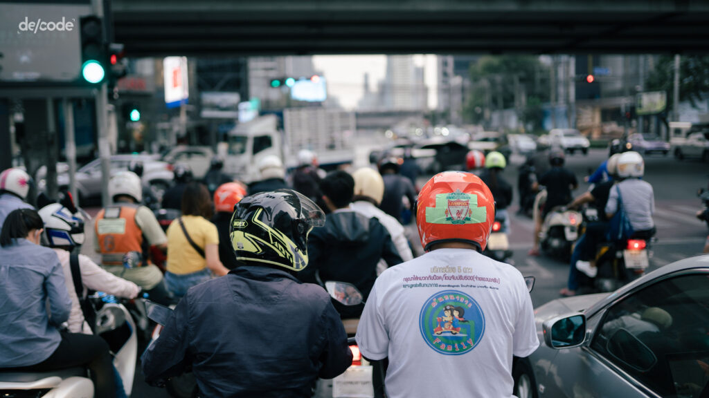 สุขภาพที่พังจากระบบการพักที่ไม่เป็นเวลาเป็นเพียงแค่ยอดภูเขาน้ำแข็ง อีกหนึ่งความบิดเบี้ยวที่ไรเดอร์ทุกคนจำเป็นต้องแบกรับอย่างเลี่ยงไม่ได้คือเรื่องอุบัติเหตุ จากความคิดที่ว่า ‘ยิ่งช้ายิ่งรายได้น้อย’ และประเด็นเรื่องจำนวนไรเดอร์ในระบบที่มีมากเกินความต้องการ จึงส่งผลให้เหล่าไรเดอร์เลือกที่จะเบลอเรื่องความปลอดภัยเพราะไม่ว่ายังไงเรื่องปากท้องต้องมาก่อน